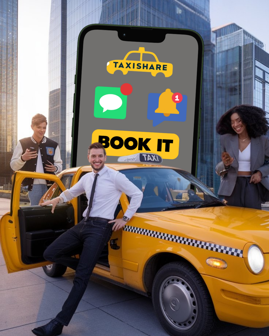 TaxiShare unisce persone che viaggiano verso destinazioni vicine, permettendo loro di condividere un taxi e ridurre significativamente i costi del viaggio.